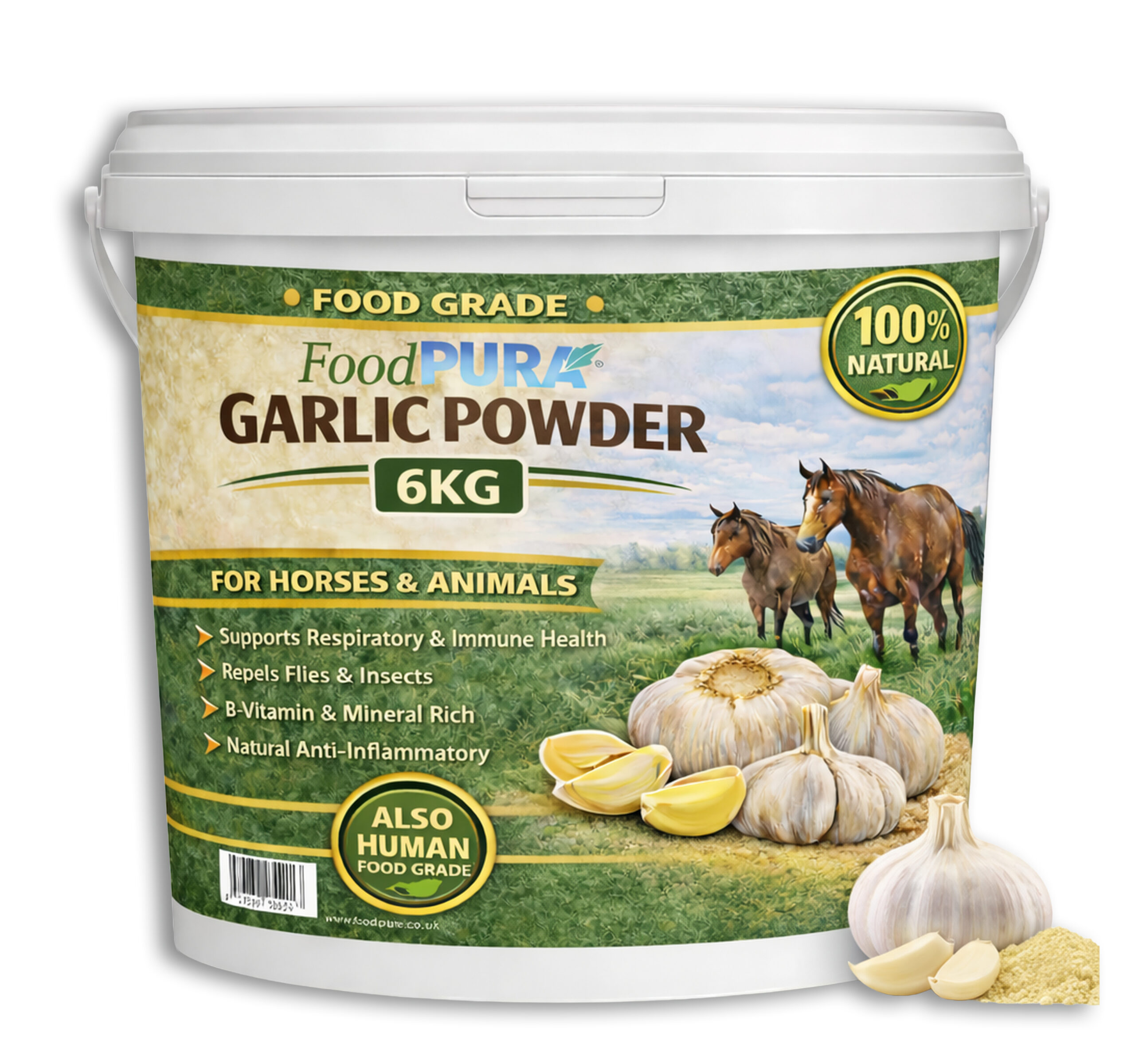 For Animal Horse & Pony use Garlic Powder can be made in to a Paste and applied to treat Mudfever, Hives, Ring Worm, Rain Scald and all types of Skin Conditions.  When added to Animal FEED its benefits include Improving Respiratory problems in horses and acting as a Fly Repellent, a Natural Antibiotic, Garlic increases general Immune activity, Help quickly Remove Toxins from the body that contribute to Poisoning, Antifungal, Antiviral and Antibacterial effects can contribute to the Healing process, Anti-Septic, Anti-Inflammatory and Antibiotic effects, reducing Blood Pressure.